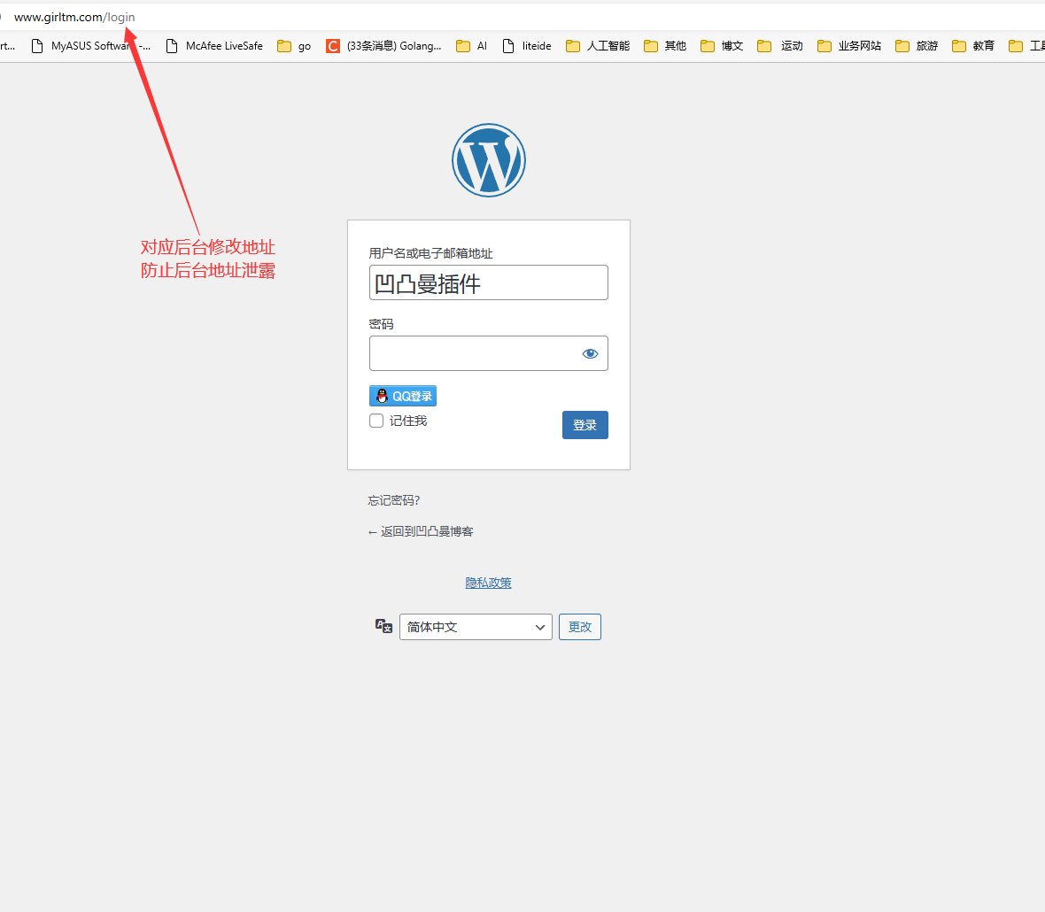 默认wp-login.php及wp-admin直接访问不安全,想修改后台访问路径,防止被别人猜到后台地址
